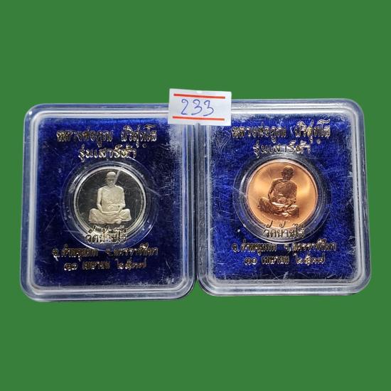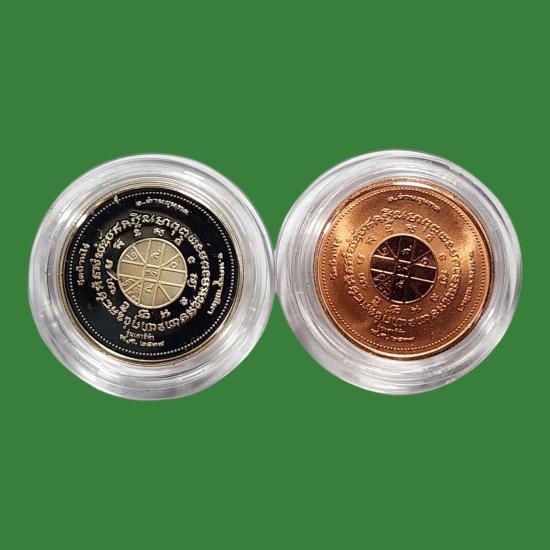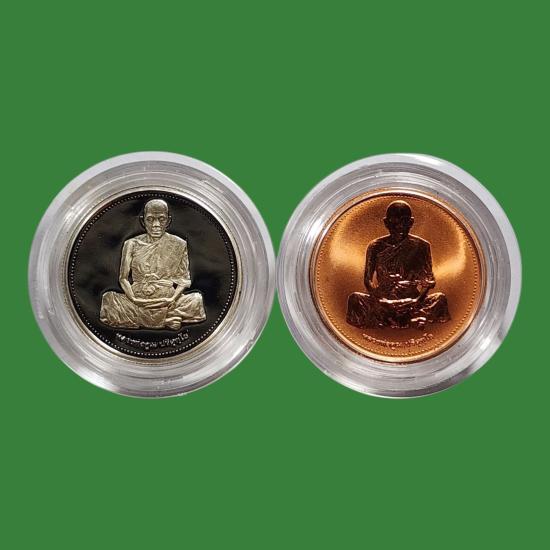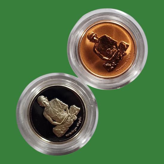 หลวงพ่อคูณ วัดบ้านไร่ รุ่นเสาร์ห้า พ.ศ.2537 เนื้อเงินขัดเงา + ทองแดงขัดเงา สภาพสวยตามรูป 2 องค์ |