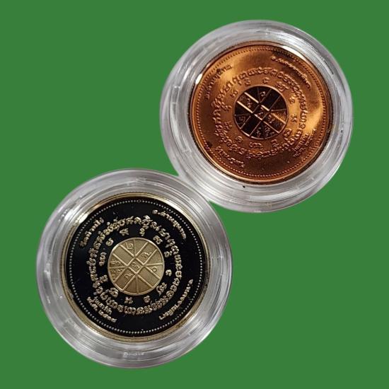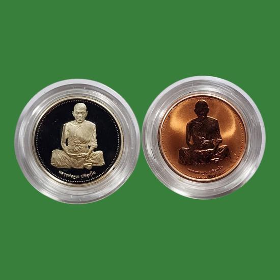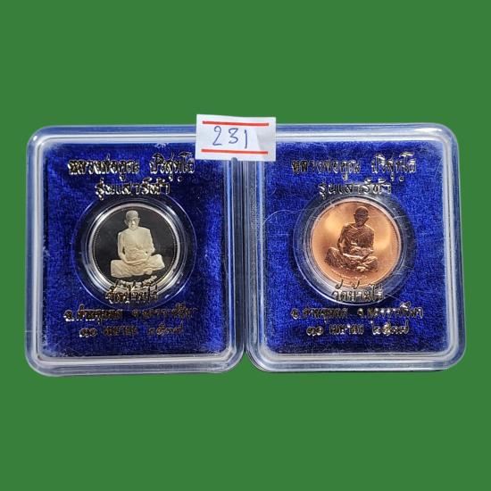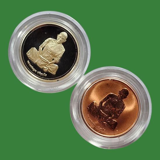 หลวงพ่อคูณ วัดบ้านไร่ รุ่นเสาร์ห้า พ.ศ.2537 เนื้อเงินขัดเงา + ทองแดงขัดเงา สภาพสวยตามรูป 2 องค์ |