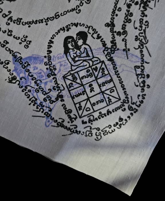 สุดยอดผ้ายันต์มหาเสน่ห์แดนล้านนา.....ผ้ายันต์มหาเสน่ห์เมตตาใหญ่ ครูบาบรรจบ วัดน้ำปั่ว จ.น่าน ปี๒๙ ขนาด๑๕นิ้ว * ๑๕นิ้ว สภาพสวยมากเก่าเก็บหายากเคาะเดียว |