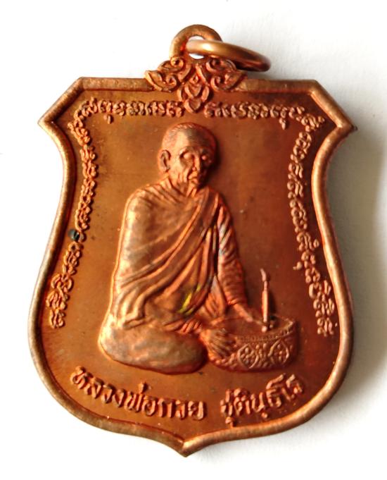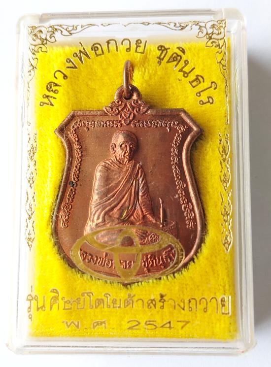 ชื่อพระเครื่อง เหรียญหลวงพ่อกวยทำน้ำมนต์ ศิษย์โตโยต้าสร้างถวาย วัดซับลำใย ลพบุรี หลวงปู่หมุน วัดบ้านจาน พระอาจารย์บวงสรวงดวงวิญญาณหลวงพ่อกวยอาจารย์ของท่านในพิธีปลุกเสกด้วย พ.ศ.2543 สภาพสวยนอนกล่องรับป