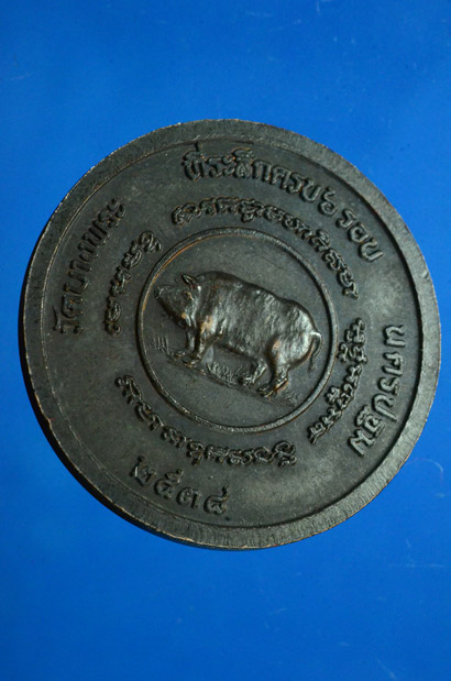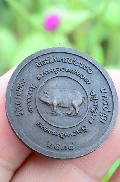 เหรียญหลวงพ่อเปิ่น ครึ่งองค์ หลัง หมู ที่ระลึกครบรอบ 6รอบ ปี2538 เนื้อทองแดง ตอกโค๊ต ครับ |