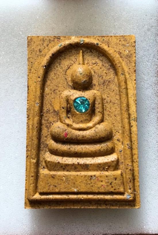 พระสมเด็จ หลังยันต์คาถา ชินบัญชร ( วัดสร้าง ) หลวงปู่ศิลา สิริจันโท ออกวัดโพธิ์ศรีสะอาด รุ่นชินบัญชร เนื้อเหลือง อกฝังพลอย NO 2771