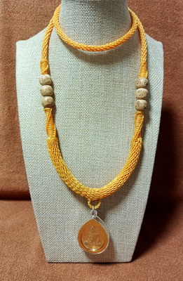 สร้อยคอเชือกเทียน (งานถักมือ สีเหลืองทอง)( ห้อยพระ 1 องค์ ) แบบสวมคอ พอสวยครับ ยาว 30 นิ้ว |