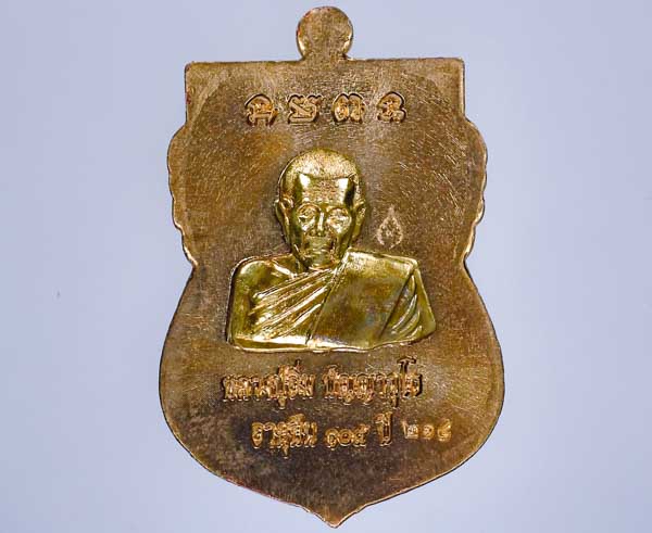 *หน้ากาก หน้าหลัง เหรียญเสมาอายุยืน115ปี หลวงปู่อิ่ม วัดทุ่งนาใหม่ ด้านหน้า พ่อท่ายคล้าย วาจาสิทธิ์ หลังหลวงปู่อิ่ม เนื้อทองทิพย์ลงยา |