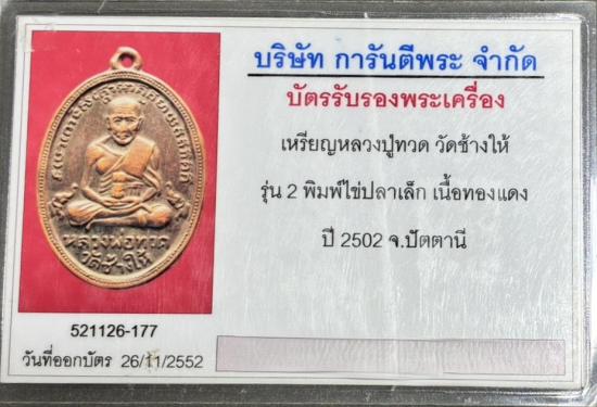 เหรียญหลวงปู่ทวด วัดช้างให้ รุ่น 2 พิมพ์ไข่ปลาเล็ก พุฒย้อยสั้น ปี 2502 พร้อมบัตรรับรอง สนใจสอบถามเพิ่มเติมโทรคุยกัน 0891730266 |