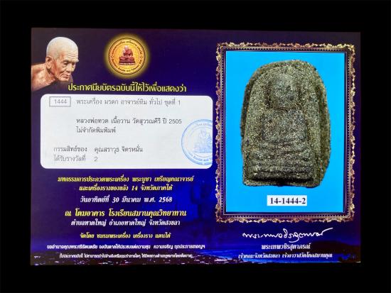 หลวงปู่ทวด วัดสุวรรณคีรี ปี 2505 พิมพ์ซุ้มกอเล็ก หายาก มีใบประกาศในถิ่นครับ |