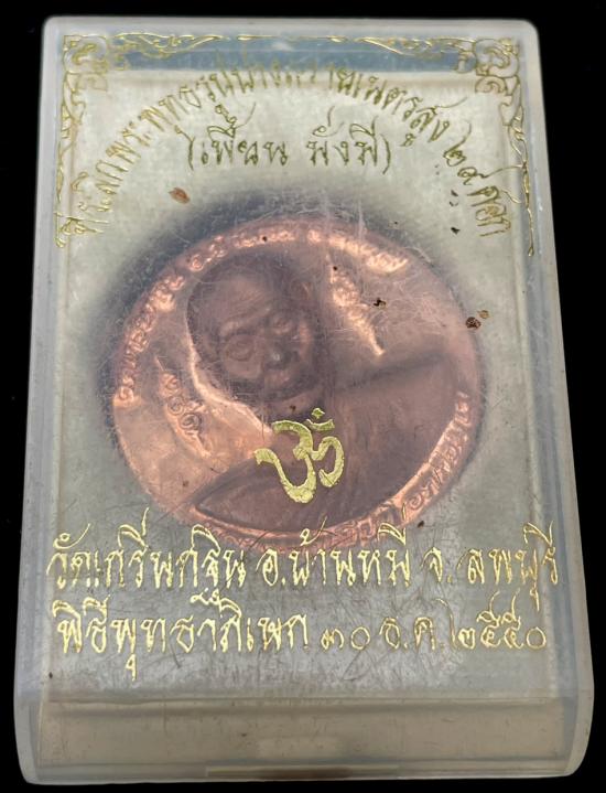 เหรียญ เพี้ยน มั่งมี หลวงพ่อเพี้ยน วันเกริ่นกฐิน จ.ลพบุรี เนื้อทองแดง + เนื้อผง ปี 2550 กล่องเดิม