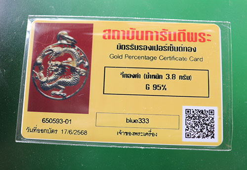 จี้ทองลายมังกร สวยๆ (ซื้อเก็บ ไม่ได้ใช้) น้ำหนัก 3.8 กรัม(1สลึง) เปอร์เซนต์ทอง 95 % ซื้อใหม่บวกค่ากำเหน็จต้องมี 16,800 บาทครับ