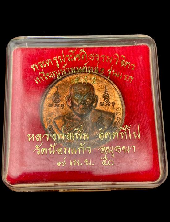 เหรียญหล่อบาตรน้ำมนต์ รุ่นแรก เสาร์ 5 หลวงพ่อเพิ่ม วัดป้อมแก้ว จ.อยุธยา ปี 2550 เนื้อทองแดง กล่องเดิม