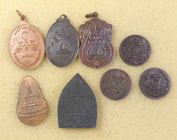 เหรียญหลวงพ่อปาน คลองด่าน 2 เหรียญ +เหรียญหลวงพ่อผา วัดไตรสามัคคี สมุทรปราการ+เหรียญหลวงพ่อบ้านแหลม วัดครุนอก+ผงหลวงพ่อแฉ่ง วัดราษฎรนิยม นนทฯ+เหรียญหลวงพ่อสนธิ์ วัดปราสาท นนทฯ 3เหรียญ |