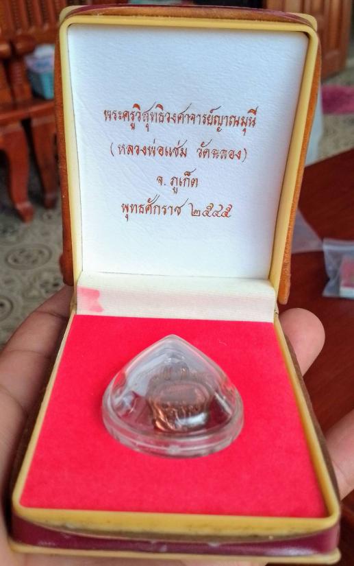 เคาะเดียวแดง.....รูปหล่อลอยองค์ เนื้อทองแดง หลวงพ่อแช่ม วัดฉลอง จ.ภูเก็ต ปี 2545 พร้อมกล่องเดิม |