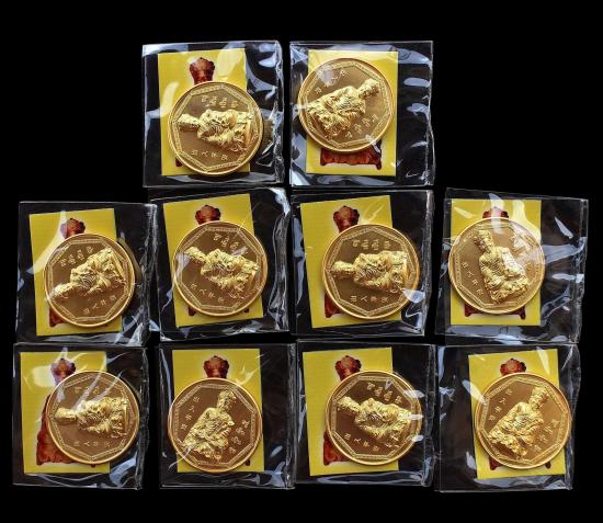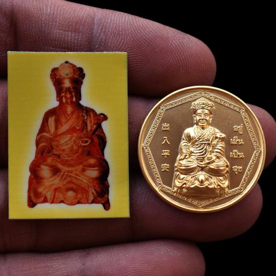 ชุด 10 องค์...เหรียญไต้ฮงกง หลังยันต์กันภัย เนื้อกะไหล่ทอง ปี 2551 มีภาพเทพเจ้าไต้ฮงกง ในซองทุกเหรียญ บวงสรวง ศาลเจ้าพลับพลาชัย หลวงพ่อรวย วัดตะโก , พ่อท่านบุญให้ วัดท่าม่วง ปลุกเสก