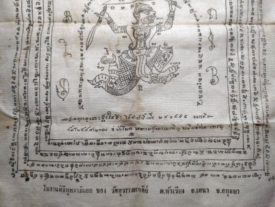 ผ้ายันต์หนุมาน มงคล 8 สาย วัดสุวรรณเจดีย์ อยุธยา พ.ศ. 2494 |