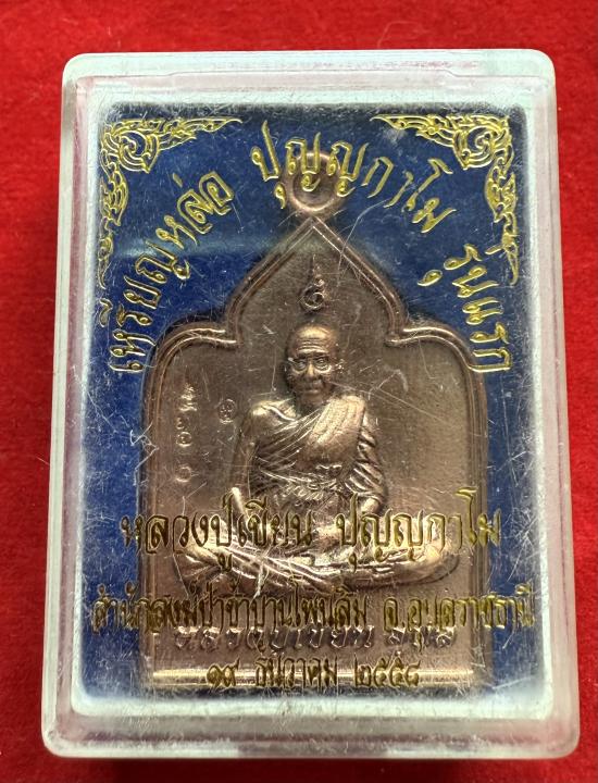 เหรียญหล่อรุ่นแรก หลวงปู่เขียน สำนักสงฆ์ป่าช้าบ้านโพนสิม จ. อุบลราชธานี ปี 2558 เนื้อทองแดง หมายเลข 560 |