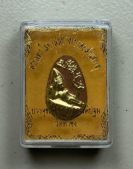 พระพุทธไสยาสน์โปรดอสุรินทราหู ด้านหลังบรรจุชนวนสมเด็จองค์ปฐม วัดท่าซุง เนื้อผงลงทอง |