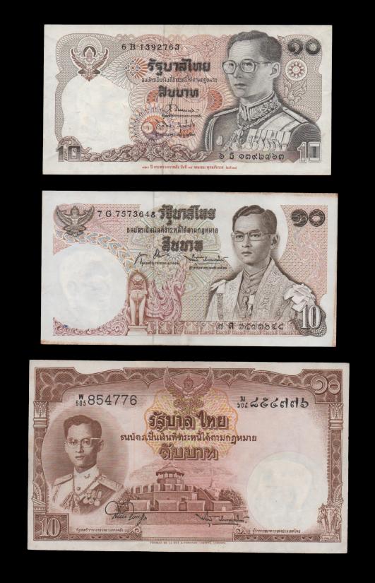 วัดใจ เคาะเดียว ธนบัตรในหลวงรัชกาลที่๙ ชนิดราคา 10 บาท รุ่นเก่า จำนวน 3 ใบ จาก 3 รุ่น น่าสะสมมาก |