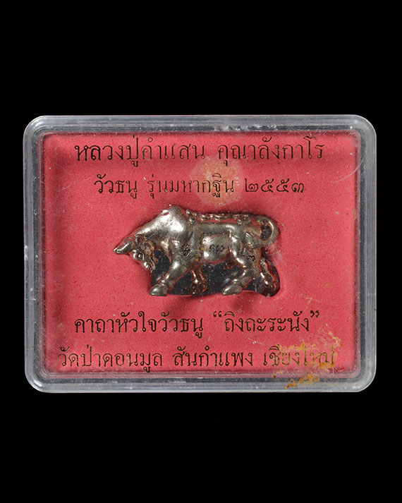 วัวธนู หลวงปู่คำแสน วัดป่าดอนมูล พร้อมกล่องเดิมครับ พระบ้านผมเหมามาเยอะ วัดใจเท่าไหนเท่านั้นทุกรายการครับ