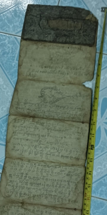 ของเก่าแก่ครับ ชำรุดนิดหน่อยตามภาพ กว้างประมาณ 6 นิ้ว ยาว 1 เมตร 50 เซนครับ มีตัวหนังสือโบราณทางเหนือด้วยคับ |