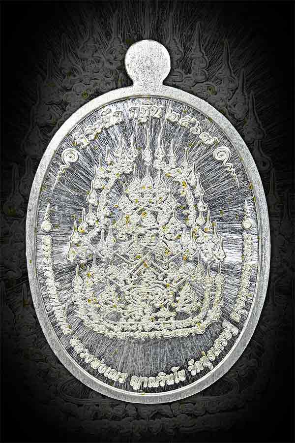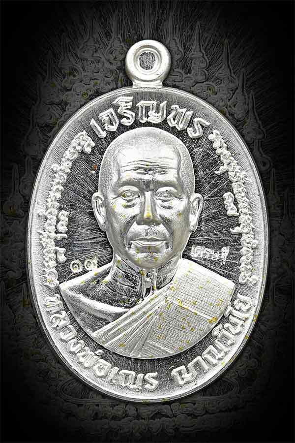 เหรียญเจริญพรบน รุ่นแรก หลวงพ่อเณร วัดทุ่งเศรษฐี จ.กรุงเทพฯ เนื้อเงินบริสุทธิ์พรายทองคำแท้ หมายเลข 19 ตอกโค๊ดเศรษฐี รับประกันพระแท้