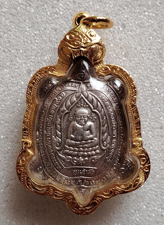 เหรียญเต่าเจ้าสัวหลวงปู่หลิวเนื้อเงินเลี่ยมกรอบทองอิตาลี่พร้อมใช้ |