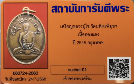 เหรียญหลวงปู่ไข่ วัดบพิตรพิมุขฯ บล๊อกนวะเนื้อทองแดง ปี 2515 จ.กรุงเทพฯพร้อมกล่อง