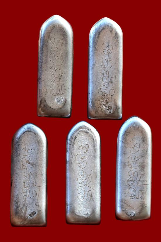 ชุด 5 องค์...พระลีลาพารวย เนื้อชินตะกั่วหล่อโบราณ ด้านหลังหลวงปู่จารยันต์หัวใจพระสีวลี ปี 2555 หลวงปู่ชั้น วัดดอนสนวน จ.ชัยนาท พร้อมซองรูปใบคาถาเดิมจากวัด สภาพพระตามรูปทุกประการ (ขนาดประมาณ 4.1 x 1.2 ซม.)