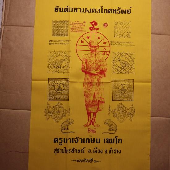 ผืนใหญ่......(ขนาด 22 X 33 นิ้ว) ผ้ายันต์มหามงคลโภคทรัพย์ หลวงพ่อเกษม เลข 1250 ..68.9.26 |