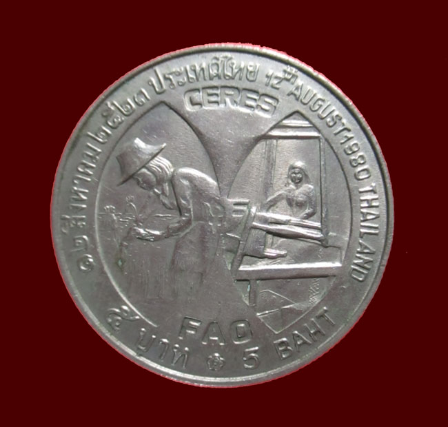 ถวายความอาลัย "สมเด็จพระพันปีหลวง" เหรียญ 5 บาท พระราชินี FAO CERES ปี 2523 |