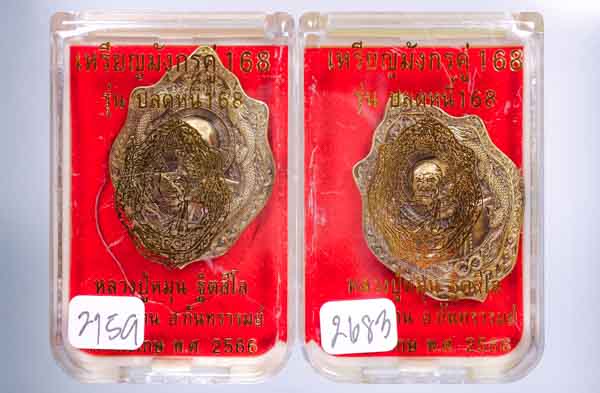 *ทีเดียว 2 องค์ ทองทิพย์รมซาติน เข้มขลังมาก เหรียญมังกรคู่168 รุ่นปลดหนี้168 หลวงปู่หมุน ฐิตสีโล ออกวัดบ้านจาน ปี66 เคาะเดียวแดง* |