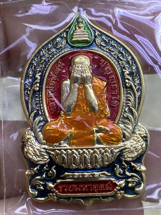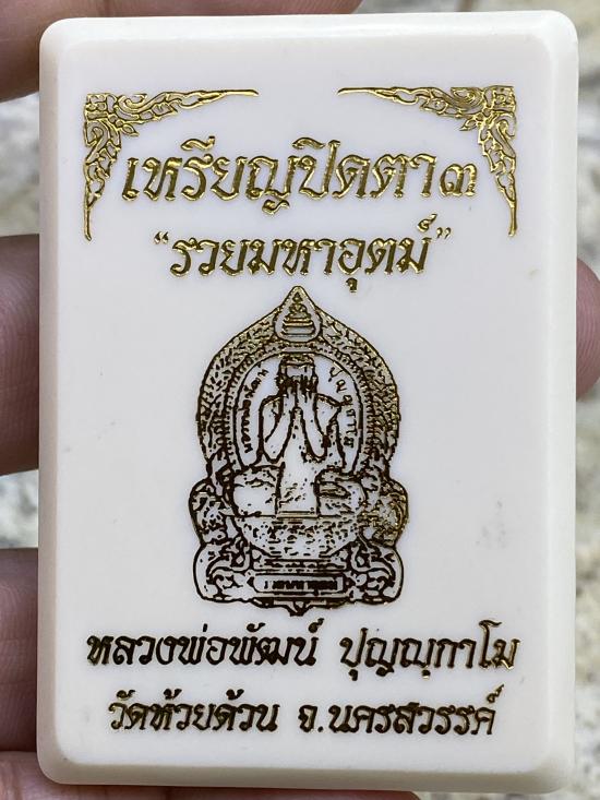 เหรียญปิดตา3 หลังปืนไขว้ รุ่น รวยมหาอุตม์ หลวงพ่อพัฒน์ วัดห้วยด้วน นครสวรรค์ เนื้อสัตตะลงยา เลข 1329 กล่อง |