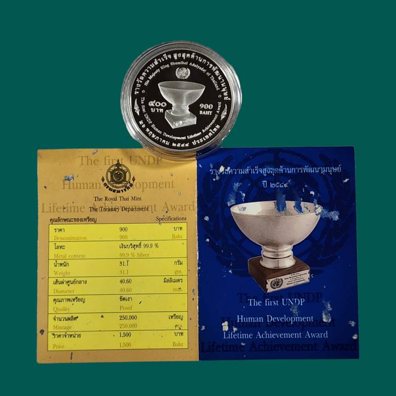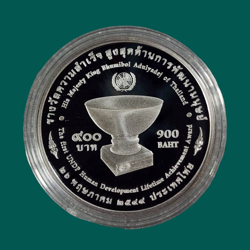 เหรียญ 900 บาท สหประชาชาติทูลเกล้าฯถวายรางวัลความสำเร็จสูงสุด (UNDP) ปี2549 พร้อมกล่องครบ+ใบเซอร์