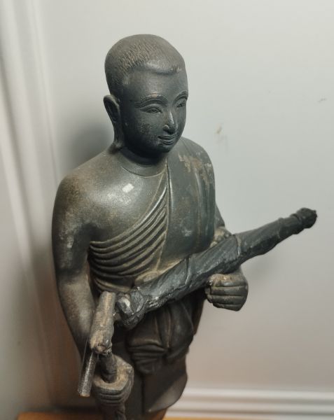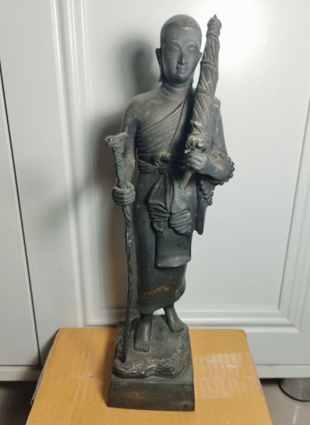 พระสิวลีวัดศรีเมืองจังหวัดสมุทรสาครเนื้อโลหะสูง 12 นิ้วหล่อได้หนาไม่ทราบปีจัดสร้างสวยสมบูรณ์ผิวเดิม |