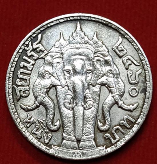 เหรียญหนึ่งบาท รัชกาลที่ 6 หลังช้างสามเศียร พ.ศ.2460 |