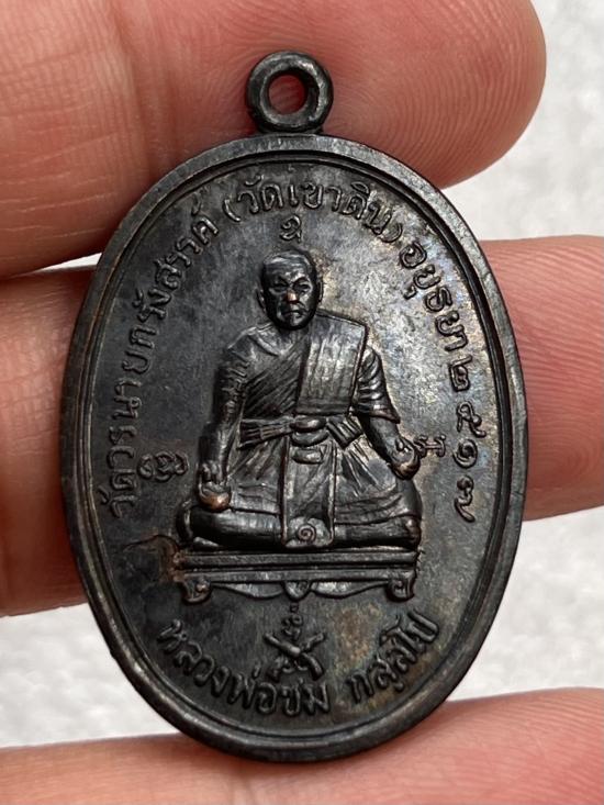 เหรียญรุ่นแรก ปืนไขว้ หลวงพ่อชม วัดเขาดิน อยุธยา ปี2517 ตอกโค๊ด สภาพสวย