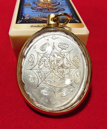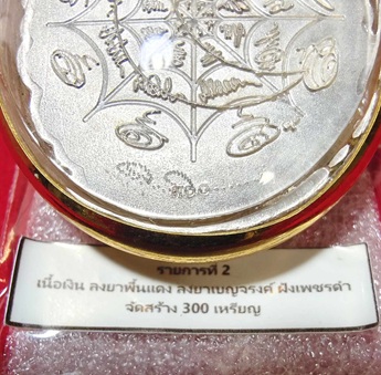 เหรียญ จตุคามรามเทพ รุ่น ปาฏิหาริย์เหนือดวง พระอาจารย์โชติ วัดพุทไธศวรรย์ อยุธยา เนื้อเงินลงยาพื้นแดง ลงยาเบญจรงค์ ฝังเพชรดำ จัดสร้าง 300 เหรียญ เป็นรายการที่ 2 หมายเลข 300(องค์สุดท้าย) เหรียญนี้อาจารย์พ่อท่านโชติได้จารลงยันต์เพิ่มให้อีกด้วยครับ เลี่ยมกันน้ำใส่กรอบผ่าหวายทองอิตาลี่ พร้อมกล่องเดิม