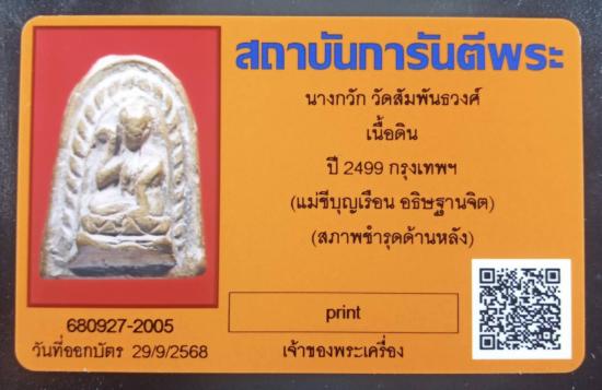 นางกวัก แม่ชีบุญเรือน ปี 2499 เนื้อดิน วัดสัมพันธวงศ์ กทม (สภาพตามรูป)(พร้อมบัตรรับรอง ครับ)