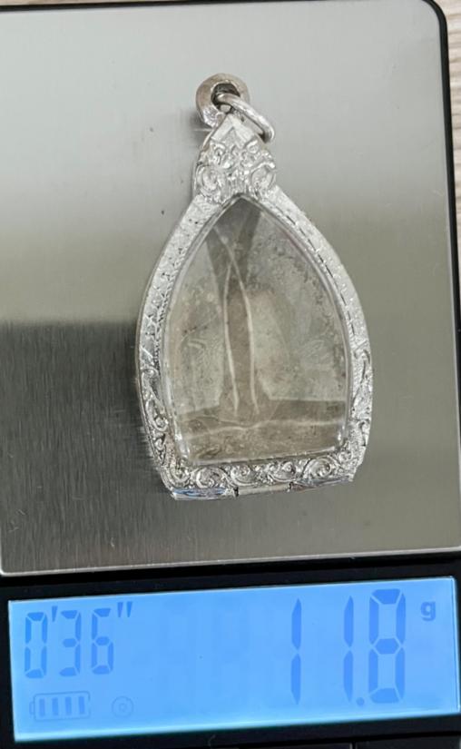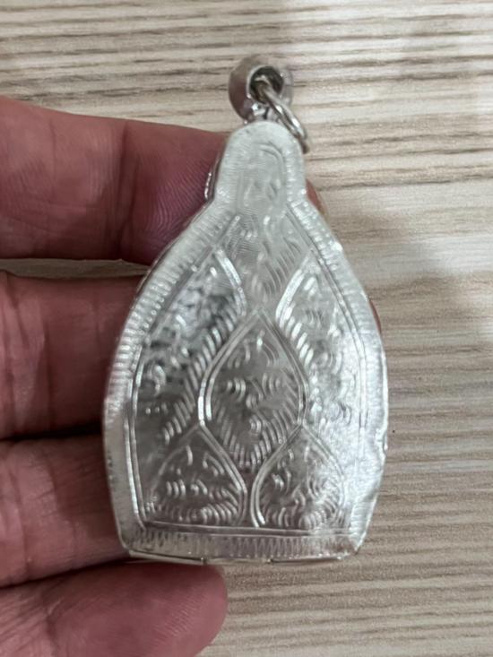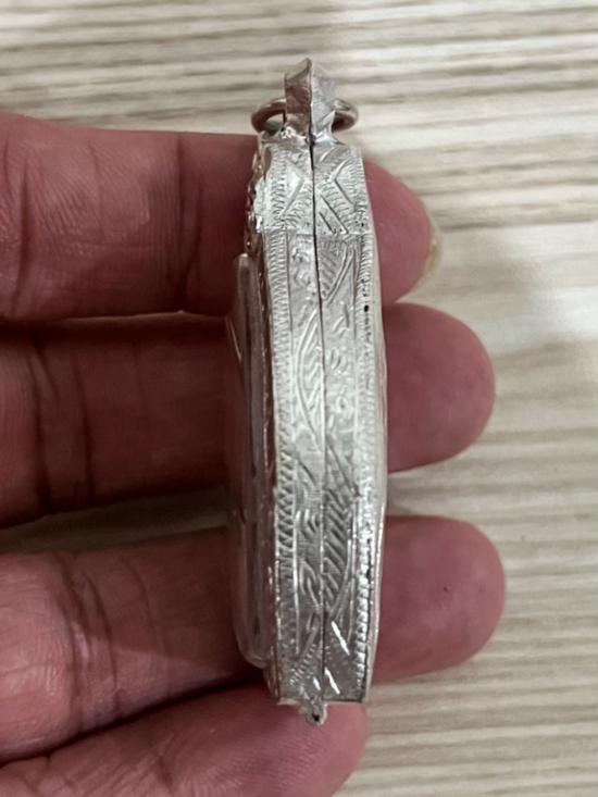 กรอบเงินแกะ ใส่เหรียญเจ้าสัว วัดวงในกว้าง ๒.๓ cm. สูง ๓.๕ cm.น้ำหนัก ๑๑.๘ กรัม |