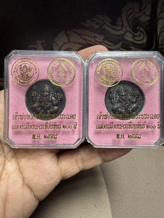(วัดใจ เปิด 2 เหรียญ 2 กล่อง) !!เหรียญพระพิฆเนศ หลักเมืองพระประแดง ฉลองเมือง 200 ปี นครเขื่อนขันธ์ ปี58 พร้อมกล่องเดิม 2 กล่อง |