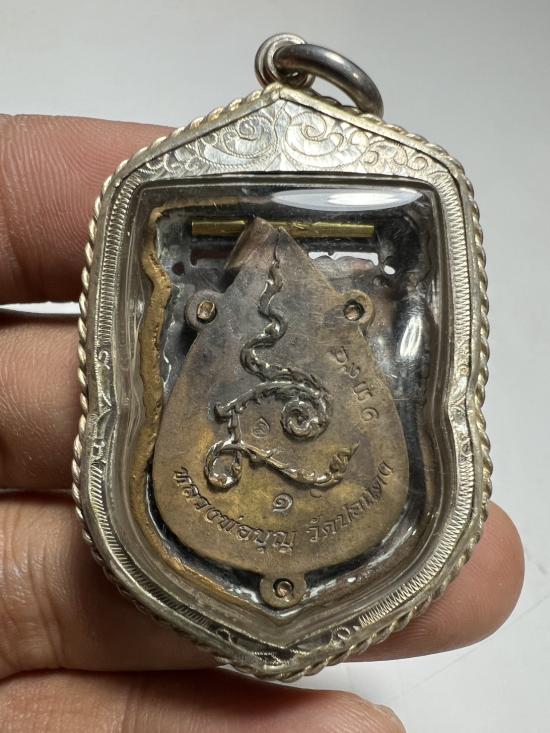 เหรียญหล่อหลวงพ่อบุญวัดปอแดงฝังตะกรุดทองคำพร้อมเลี่ยมเงินครับ