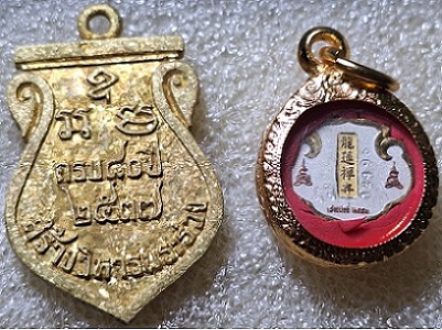 วัดใจทีเดียว 2 เหรียญ วัดมังกรกมลาวาส (เล่งเน่ยยี่) ปี 53 เนื้อสามกษัตริย์ ใส่ตลับทองไมครอน+เหรียญเสมา องค์พระปฐมเจดีย์ รุ่นเสมาคู่บารมีปี 37 |