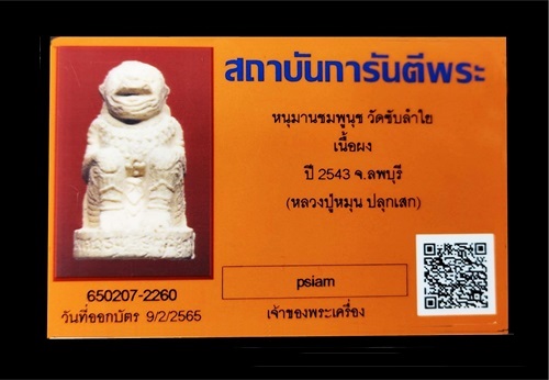 >>> วัดใจ เคาะเดียวแดง <<< หนุมานชมพูนุช วัดซับลำใย เนื้อผง ปี 2543 จ.ลพบุรี หลวงปู่หมุน ปุกเสก สวยๆ พร้อมบัตรรับรอง