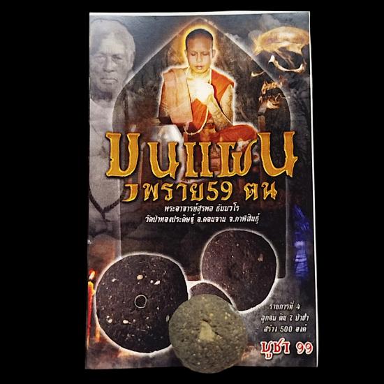2.ลูกอมพราย 59 ตน ฝังตะกรุดเงิน โดย พระอาจารย์สุรพล ใช้ดิน 7 ป่าช้า และ มวลสารอ. เปล่ง บุญยืน ที่รับมอบมากจากอ. วิชัยและอ. สำรอง |
