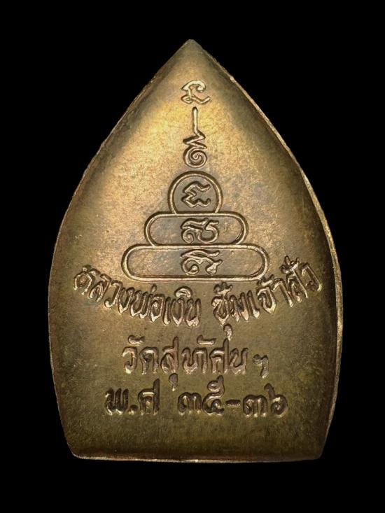 เหรียญซุ้มเจ้าสัว หลวงพ่อเงิน วัดบางคลาน วัดสุทัศน์เทพวราราม กทม. จัดสร้าง ปี ๒๕๓๕-๓๖ เนื้อทองแดงผิวไฟ ตอกโค๊ต (พิมพ์ใหญ่) "เหรียญเจ้าสัว" พุทธคุณดีทาง ทำมาค้าขายร่ำรวยเงินทอง มั่งคั่งดั่งเจ้าส้ว |