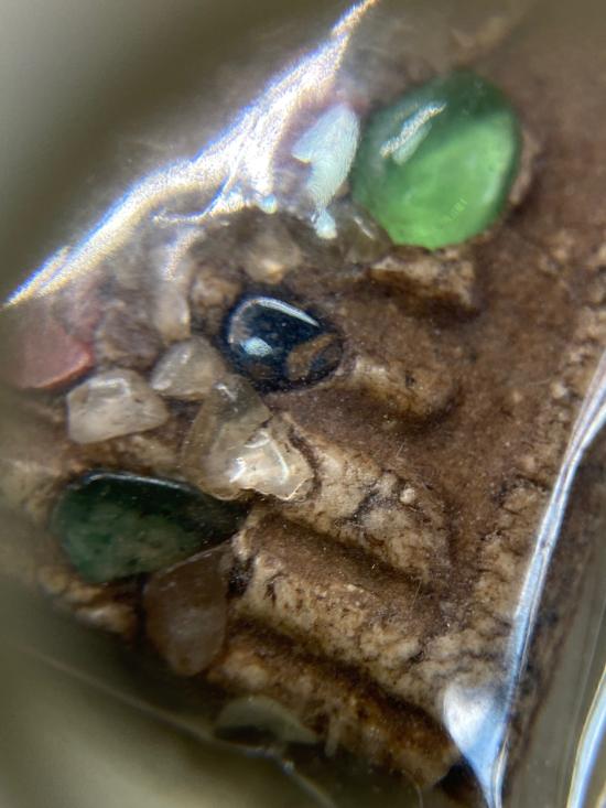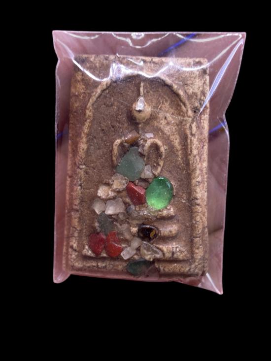 ***พิมพ์สมเด็จทรงนิยม เนื้อผงผสมมวลสารเก่า ด้านหน้าฝังพลอยหลายสีแน่นเต็มองค์ ทั้งเขียว แดง ม่วง ขาว เพิ่มความงดงามและมงคล ด้านหลังเรียบมีคราบเก่าแห้งธรรมชาติ