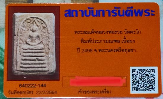 หลวงพ่อรวย วัดตะโก จ.อยุธยา สมเด็จพิมพ์ประภามณฑล รุ่นแรก ปี2498 |