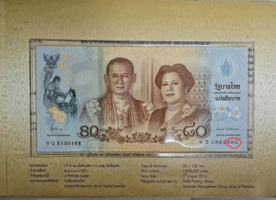 ธนบัตรเฉลิมพระเกียรติสมเด็จพระนางเจ้าสิริกิติ์ พระบรมราชินีนารถ เนื่องในโอกาสพระราชพิธีมหามงคลเฉลิมพระชนมพรรษา ๘๐ พรรษา ๑๒ สิงหาคม ๒๕๕๕ ราคาเปิดประมูล ลงท้าย 168 |