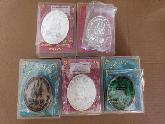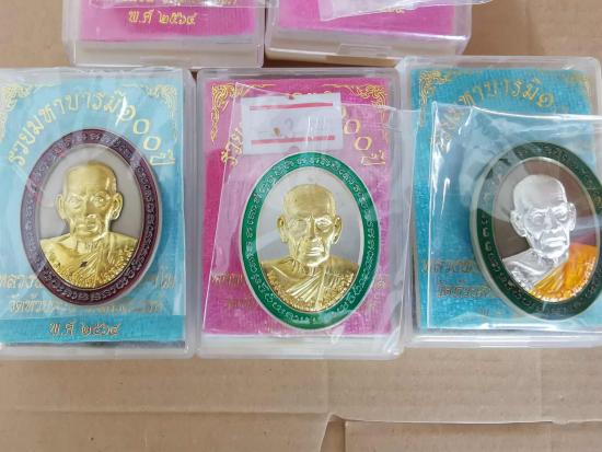 เหรียญรวยมหาบารมี100ปี เนื้อรวมเนื้อ หน้ากาก ลงยาขอบ 5 องค์ กล่องครบ หลวงพ่อพัฒน์ วัดห้วยด้วน