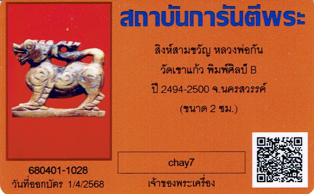 ***สิงห์ตัวนี้ผมส่งเป็นหลวงพ่อเดิม บัตรออกเป็นสิงห์หลวงพ่อกัน ยุคต้น ว่ากันตามบัตรครับ***