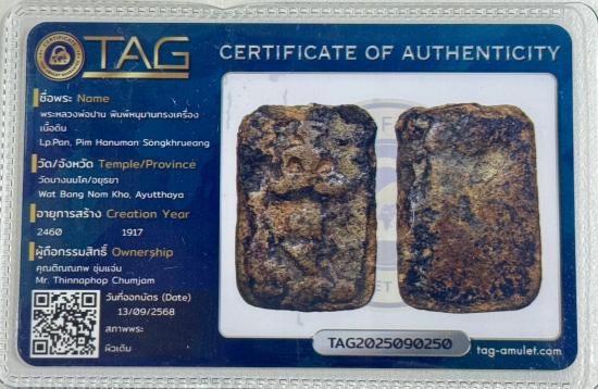 หลวงพ่อปาน วัดบางนมโค พิมพ์ทรงหนุมาน เนื้อดิน ปี2460