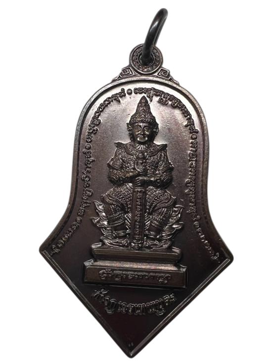 เหรียญรัตนมงคล ท้าวเวสสุวรรณโณ (หน้าเทพ ทรงจำปี 61) (ท้าวกุเวร เทพบุตร) รุ่น คู่บารมี ปี 45 พิมพ์จำปีใหญ่ เนื้อมหาชนวนรมดำ หลวงพ่ออิฎฐ์ วัดจุฬามณี |